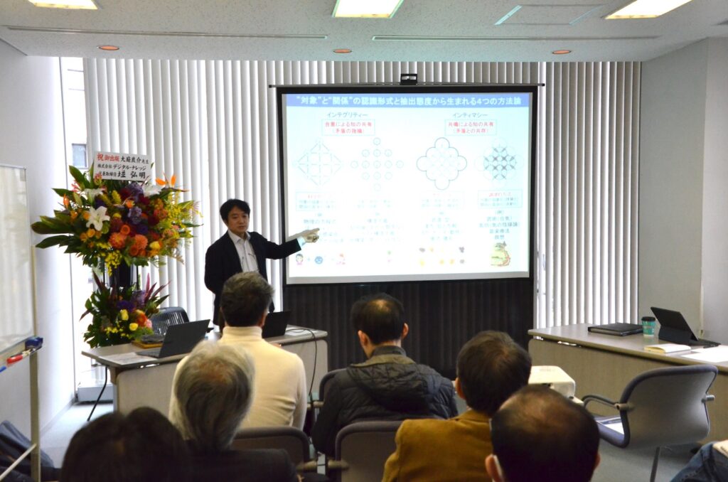 AIの位置づけも、この枠組みで明確になる。大庭氏は「AIはインテグリティーを極限まで研ぎ澄ます存在」と述べ、切り取り・記号化・確率計算によって最適解を出す方向へ進化していると整理した。そこで鍵となるのが、近年語られる拡張知能(オーグメンティッド・インテリジェンス)の考え方である。AIを自律的主体としてではなく、「人間の能力を高めるための道具であって、常に人間の判断を介在させる」ものとして捉える。医療や研究執筆の例では、AIが情報を整理・提示し、人間が生活背景や価値観、問いの意義を引き受けて判断する分業像が示された。