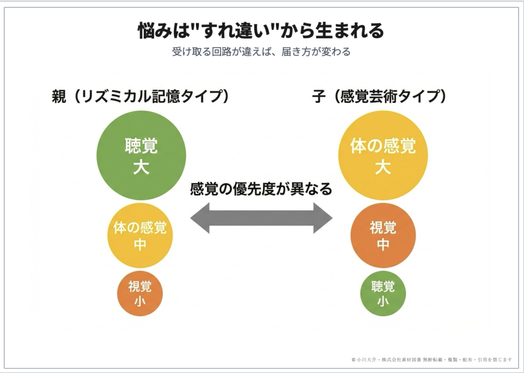 例えば、「瞬間記憶タイプ」の子。視覚が強く、パッと映像で捉えて結論を出したがります。だから途中式を書かない。これを「式を書きなさい!」と叱るのではなく、「あなたは画が掴めているから強い。でも、それを一度メモして頭から外せば、次の画がもっとよく見えるよ」と、本人の感覚に寄り添ってアドバイスをすると、納得して伸び始めます。