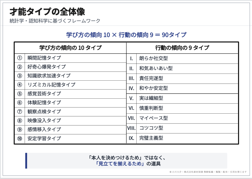 小川 私の理論は、「学び方の傾向」と、社交度や楽観度などの「行動の傾向」の二軸で構成されています。